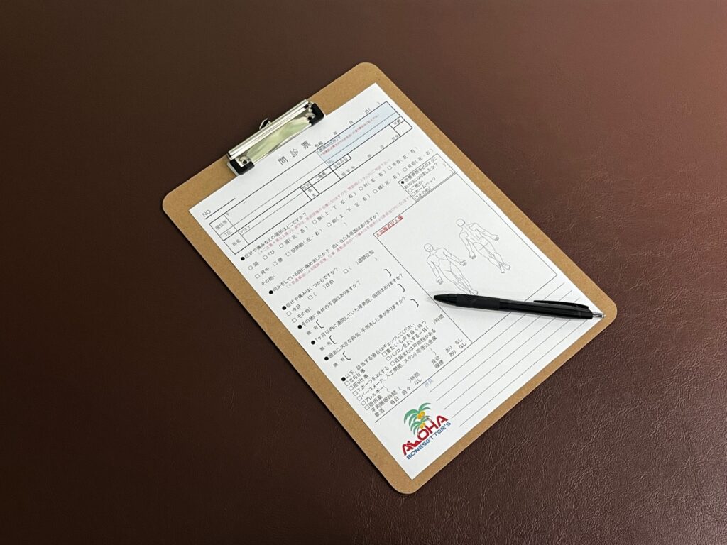 お身体の状態を把握するために問診票のご記入をお願い致します。